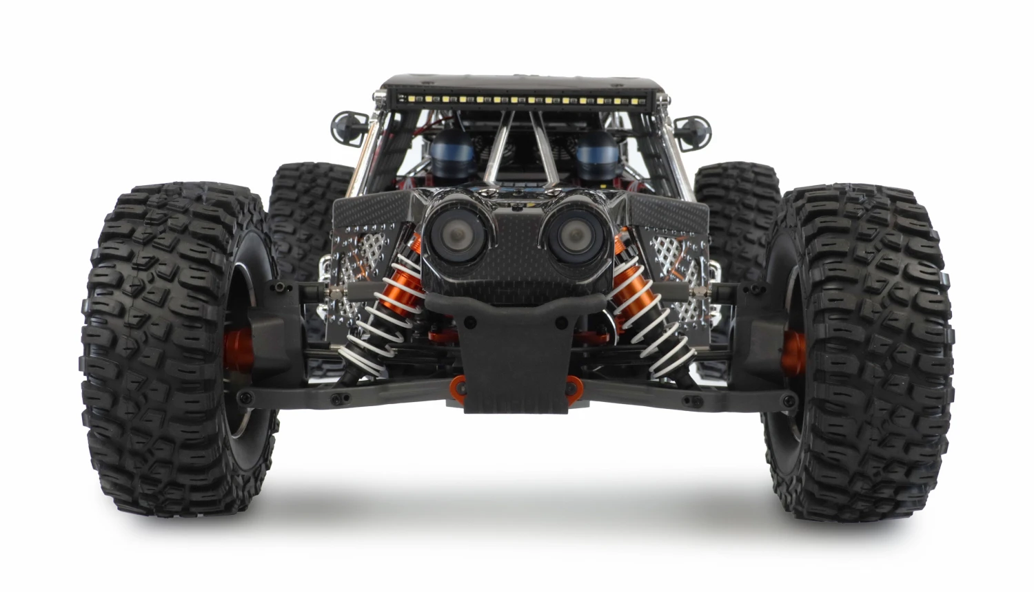 Die wunderschöne Karosserie des Modells aus stabilem Polycarbonat ist auch optisch ein absolutes Sahnestück, welches dem Modell eine sehr aggressive und Offroad typische Optik verleiht. Der RXB7 ist mit einer LED-Beleuchtungsanlage ausgestattet, welche über den Sender nicht nur ein- und ausgeschaltet werden kann, sondern auch verschiedene Leuchtmodi zulässt. Für die perfekte Ausleuchtung der Strecke sorgt eine sehr hell leuchtende Lichtleiste am Dach des Buggys.
