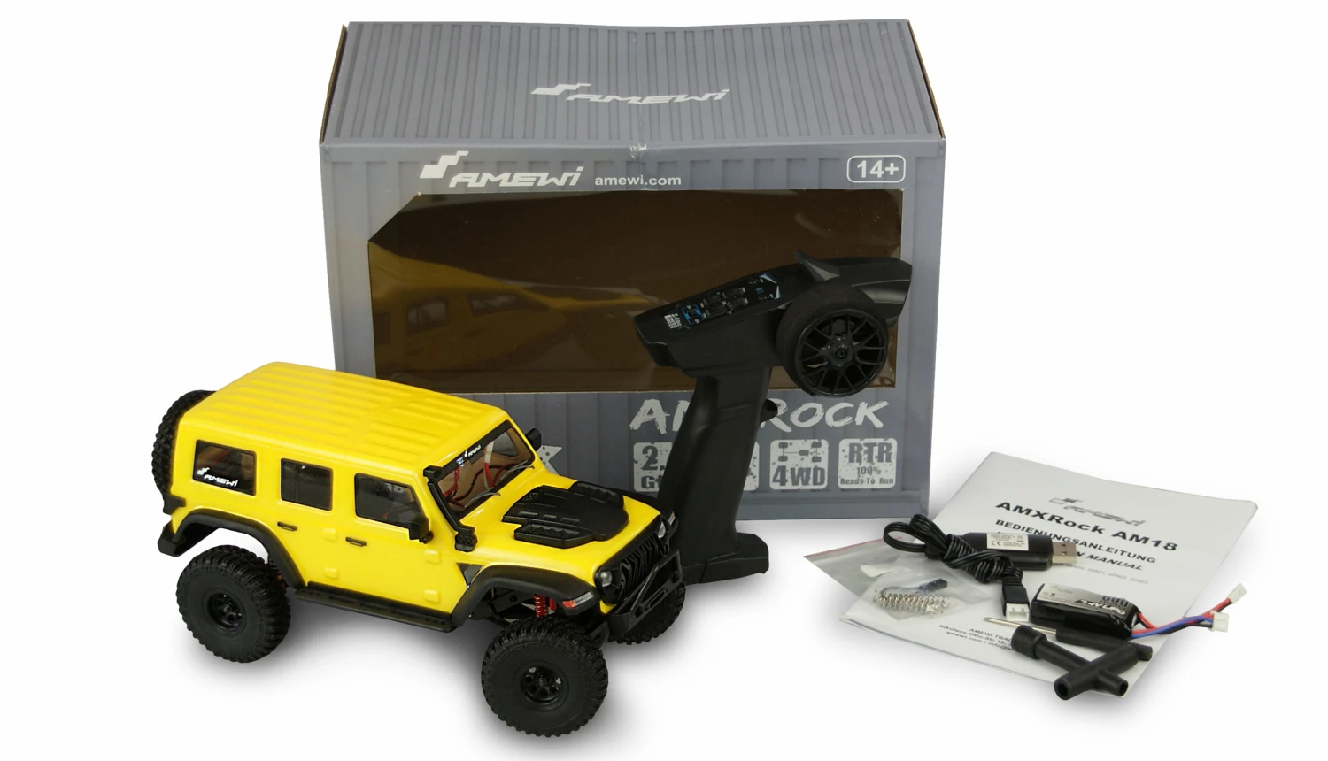 Ausgereifte Technik trifft auf wunderschöne Scale Optik – dieser kleine Scale Crawler bringt alles mit, um in der Liga der Super Crawler mitzuspielen. So verfügt der AMXRock AM18 Kratos gleich über eine ganze Reihe an ergiebigen Features im Stil eines echten Spitzenkletterers: vollwertige Mountainbreak, feinfühliger 3-in-1 Regler mit JR Servo-Anschluss, extra weiche Reifen mit sehr gutem Profil für besten Grip selbst bei rutschigem Untergrund, gesperrte Differentiale, LED-Beleuchtung vorne und hinten, Dämpfer mit viel Federweg für extreme Verwindungen des Chassis, geschütztes Hauptgetriebe mit einer 104:1 Untersetzung und einem kräftigen 050/55T Motor für hohes Drehmoment. Zudem ist das Modell im Maßstab 1:18 komplett wasserdicht und es wird als RTR-Fahrzeug fahrfertig ausgeliefert. Lediglich die Batterien für den Sender (4x 1,5V AAA Micro) sind nicht im Lieferumfang enthalten.Â
