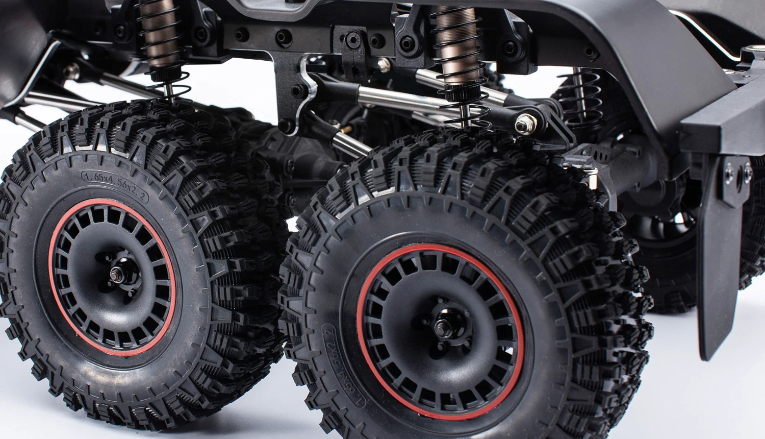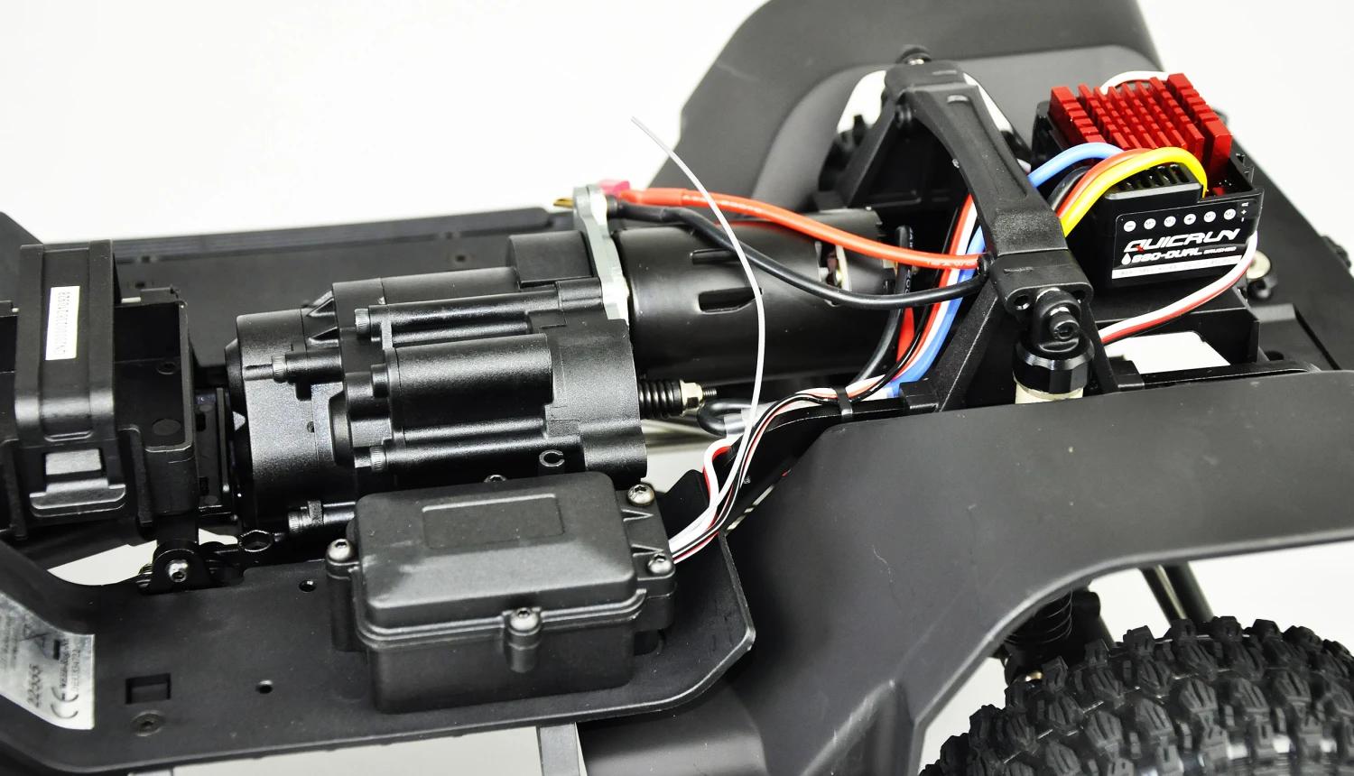 Besonders geeignet für Einsteiger und fortgeschrittene Hobbyfahrer, die ein Modell mit extremen Geländefähigkeiten suchen, werden bei diesem Crawler gleich eine ganze Reihe an weiteren Features für ausgiebige Klettertouren geboten: Dazu zählen u.a. Portalachsen, gesperrte Differentiale, ein 550er Brushed-Motor und ein Hobbywing WP880 Regler inkl. Programmierkarte.