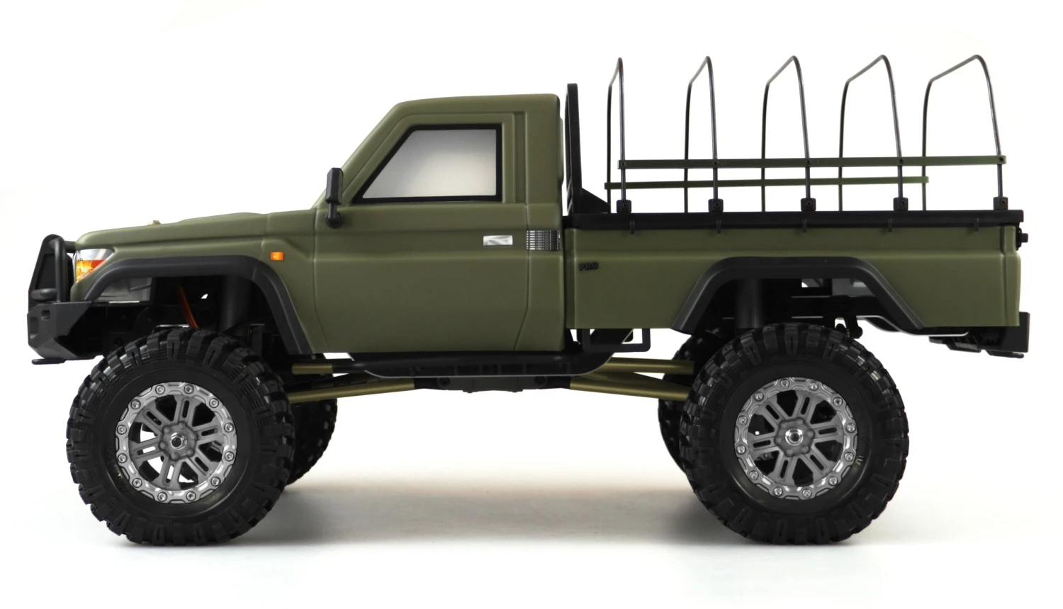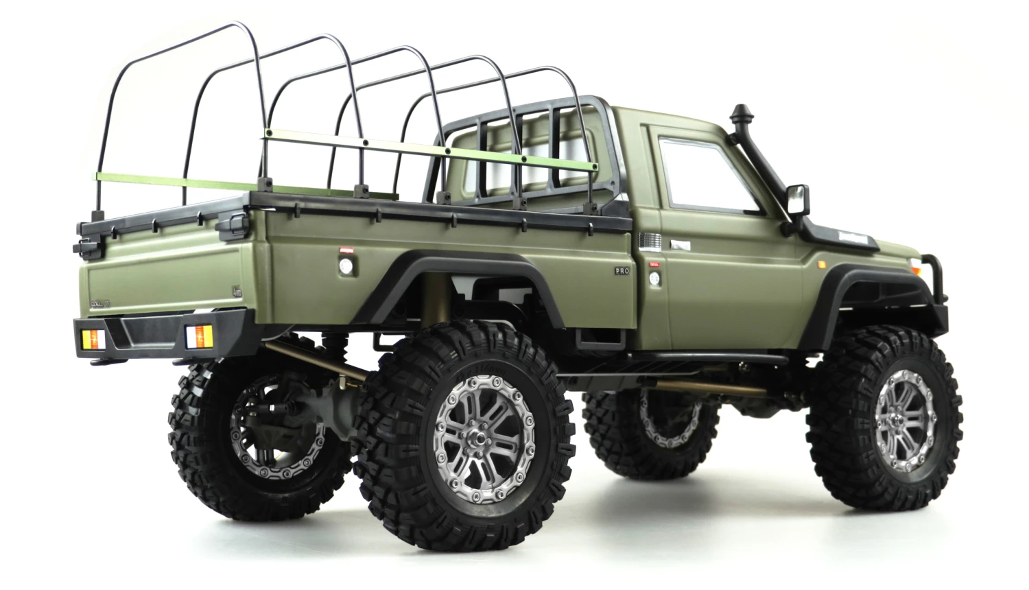 Dieser Top Crawler im Maßstab 1:10 vereint super Technik mit genialen Fahreigenschaften. Ausgestattet mit einem massiven 5mm starken Metallrahmen, Portalachsen, Metall Linkages, Metall Antriebswellen, hochwertigen komplett geschützten Öldruck Stoßdämpfern mit Staubschutz, 550er Bürstenmotor, einem gedämpften Lenkungssystem, einzeln über Sender sperrbare Differentiale (vorne / hinten) und 2 – Gang Schaltgetriebe lässt diese Fahrzeug kaum Wünsche offen. Dieses Fahrzeug ist eine komplette Neuentwickelung und bringt einige neuartige Systeme zum ersten Mal auf den Markt.