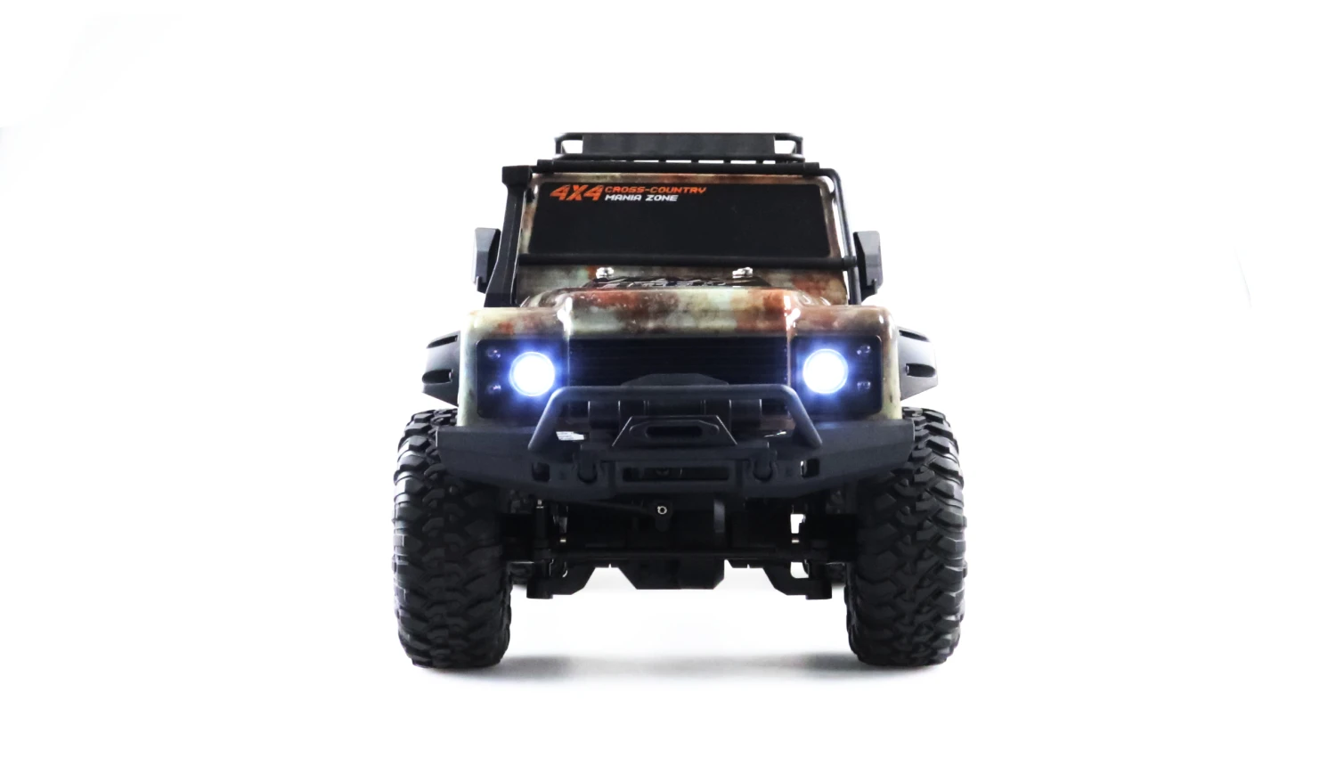 Coole Cross Country Optik trifft auf modernste Features. Durch den kräftigen Motor, dem 4WD Allradantrieb mit den oversized Reifen findet der Climbing SUV immer aus einen Weg aus der Wildnis. Helle LED’s helfen bei der Orientierung. Auf dem Dachgepäckträger lassen sich kleine Dinge transportieren – ein Megaspaß für die Piloten. Der Kunststoffrahmen wurde so konzipiert, daß er das Fahrzeug wirkungsvoll bei Kollisionen schützt. Kugellager aus Metall, eine vor Spritzwasser geschützte Elelektronik, Stoßdämpfer mit echten Metallfedern, eine gut in der Hand liegende und feinfühlige Pistolenfernsteuerung mit moderner und störungssicherer 2,4GHz Funktechnologie unterstreichen den wertigen Eindruck des Modells.