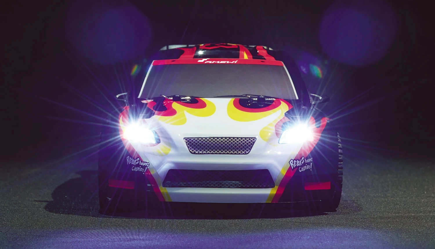 Als kleiner Zusatz wurde dieses Modell mit unterschiedlichen Beleuchtungsmöglichkeiten ausgestattet, welche über den Sender verstellbar sind. Zwischen drei unterschiedlichen LED-Beleuchtungsarten wählbar, erhält die Frontpartie so eine jeweils andere bestechende Optik. Das Modell wurde werkseitig bereits mit guten Kugellagern, Metall CVD-Antriebswellen und einem präzisen Fahrwerk ausgestattet.