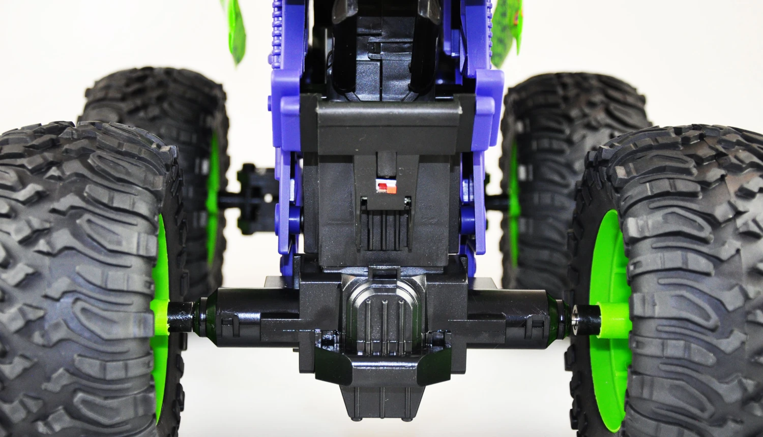Ein Monstertruck in cooler Optik, der sich den Namen wirklich verdient hat. Riesige Gummiräder, eine monströse Karosserie gepaart mit einer hochwertigen Elektronik und einem Spritzwasserschutz – das sind nur einige Argumente, die dieses tolle Modell voll outdoorfähig und einsteigertauglich machen. Dank des kräftigen 2WD Antriebs zeigt das Modell auch im leichten Gelände eine gute Figur. Die erreichbare Geschwindigkeit liegt bei ca. 15 km/h. Das Gas ist voll proportional steuerbar, ermöglicht damit eine stufenlose Regelung und feinfühlige Kontrolle. Im Lieferumfang ist der Akku (Li-Ion 7,4V 1200mAh), der 2,4Ghz Sender und ein USB-Ladekabel bereits enthalten. Somit ist das Modell nach dem Laden des Antriebsakkus und dem Einlegen der Batterien im Sender sofort einsatzbereit (Batterien für Sender nicht enthalten, 2x 1,5V Mignon AA).