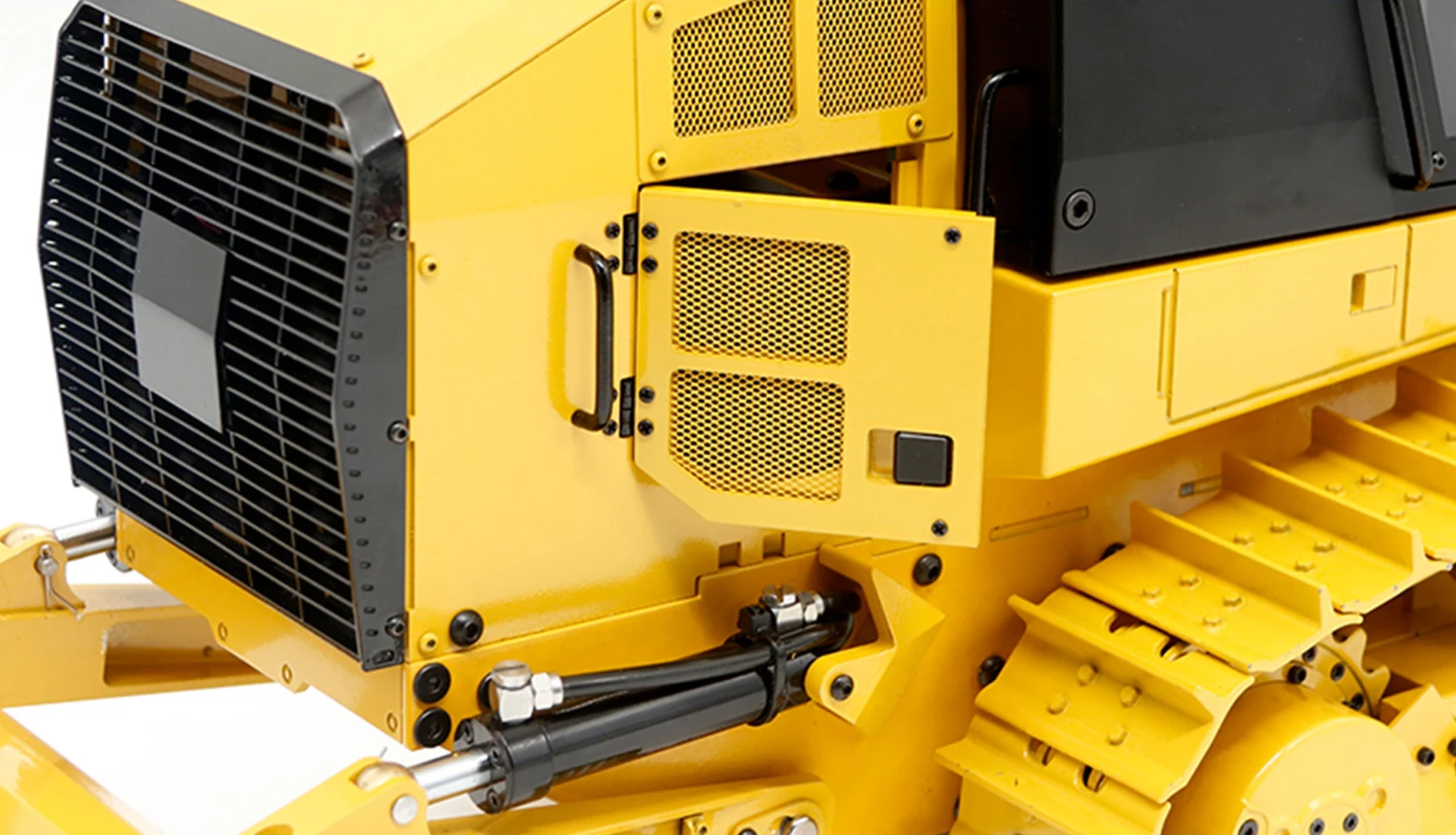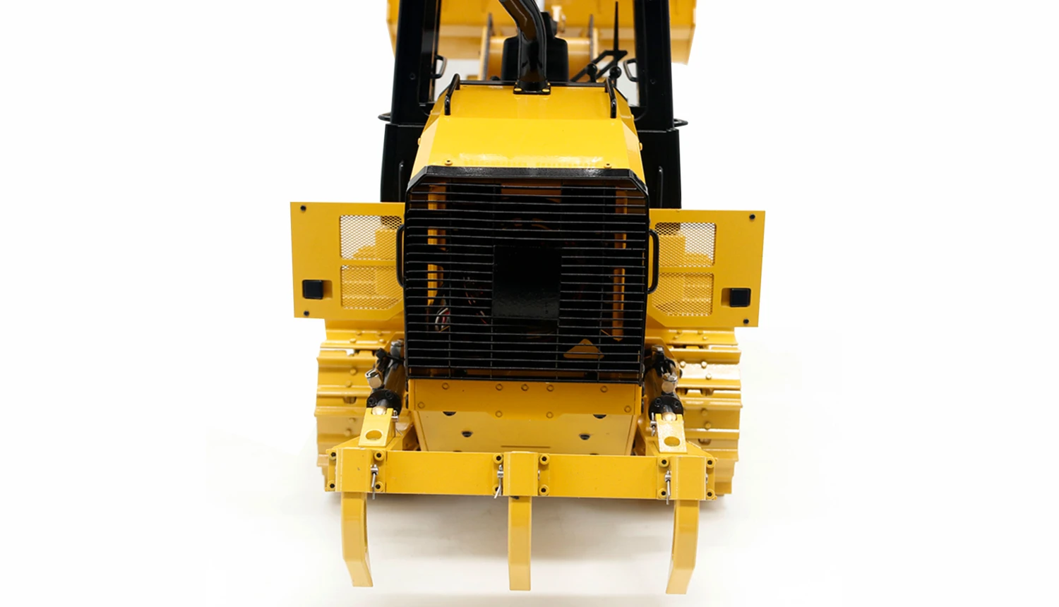 Hydraulik Kettenlader G151H im Maßstab 1:14, die völlig neue Möglichkeiten auf der heimischen Baustelle oder in jedem anderen Einsatzgebiet bietet. Durch die enormen Verstellmöglichkeiten des Auslegers mit der riesigen massiven Schaufel vereint dieses Modell die Vorzüge eines herkömmlichen Radladers mit dem starken Raupenantrieb eines Bulldozers. Zusätzlich wurde dieses hochwertige Modell mit einem Erdhacken am Heck versehen, welcher problemlos auch härtere Böden aufreißt. Das gesamte Modell besteht aus Metall und bringt dadurch ein Fahrgewicht von nahezu 15kg auf die Waage. In Verbindung mit dem Drehmoment starken 540er Brushed Motoren am Kettenantrieb ist ein perfekter Vortrieb im Gelände garantiert. Die geschweißte Stahlschaufel hebt dazu ein Gewicht von ca. 13kg an der obersten Stelle. Das Modell selbst besteht aus einer Legierung von Zink und Aluminium (außer Kette und Schaufel, diese sind aus Stahl). Zusätzlich sind hochbelastbare Hydraulikleitungen verlegt und die Pumpe ist mit einem Brushless Motor ausgestattet. Der max. Pumpendruck liegt hier bei ca. 5Mpa, was etwa 50Bar entspricht! Der durchschnittliche Arbeitsdruck liegt bei ca. 3Mpa (30Bar), die max. Hubhöhe bei 403mm mit einer Zuladung von max. 13kg.