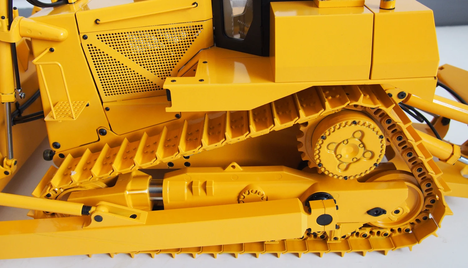 Hochwertige massive Vollmetall Planierraupe im Maßstab 1:14 mit feinster Ausstattung und enormer Kraft. Dieses Modell der Oberklasse vereint hochwertige Technik mit kraftvoller Hydraulik für max. Nutzbarkeit auf der heimischen Baustelle. Die Schub und Hebekräfte dieses Modells sind überproportional hoch und auch im schwierigen Gelände wird diese Planierraupe nicht an ihre Grenzen stoßen. Geliefert wird das Modell in einer hochwertigen Transportbox als ARTR Version. Alle Leitungen, die Anschlüsse und die Stromversorgung inkl. Empfänger sind bereits fertig verbaut und mit dem feinfühligen 2,4Ghz Sender gekoppelt. Sie müssen lediglich das Hydraulik Öl einfüllen und Batterien in den Sender einlegen, um das Modell Einsatzbereit zu machen. Verbinden sie den Antriebs Akku (optional und nicht im Lieferumfang) mit dem Stromanschluss des Modells und sie können mit der Arbeit beginnen.