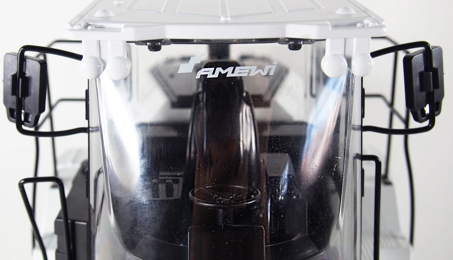 Das Herz der Hydrauliksteuerung ist eine Brushless-Hochleistungspumpe mit Überströmventil und einem Durchfluss von ca. 400ml/min. Zusätzlich ist das System mit 3-Wege-Umschaltventilen und einem Luft-Ölkühler ausgestattet. Gesteuert wird der Radlader über eine hochwertige proportionale 2,4GHz Fernsteuerung. Insgesamt können zehn Funktionen bedient werden. Vorne und hinten über helle LED-Scheinwerfer verfügend, steht dem Einsatz auch in der Dämmerung und nächtlichen Dunkelheit nichts im Wege.