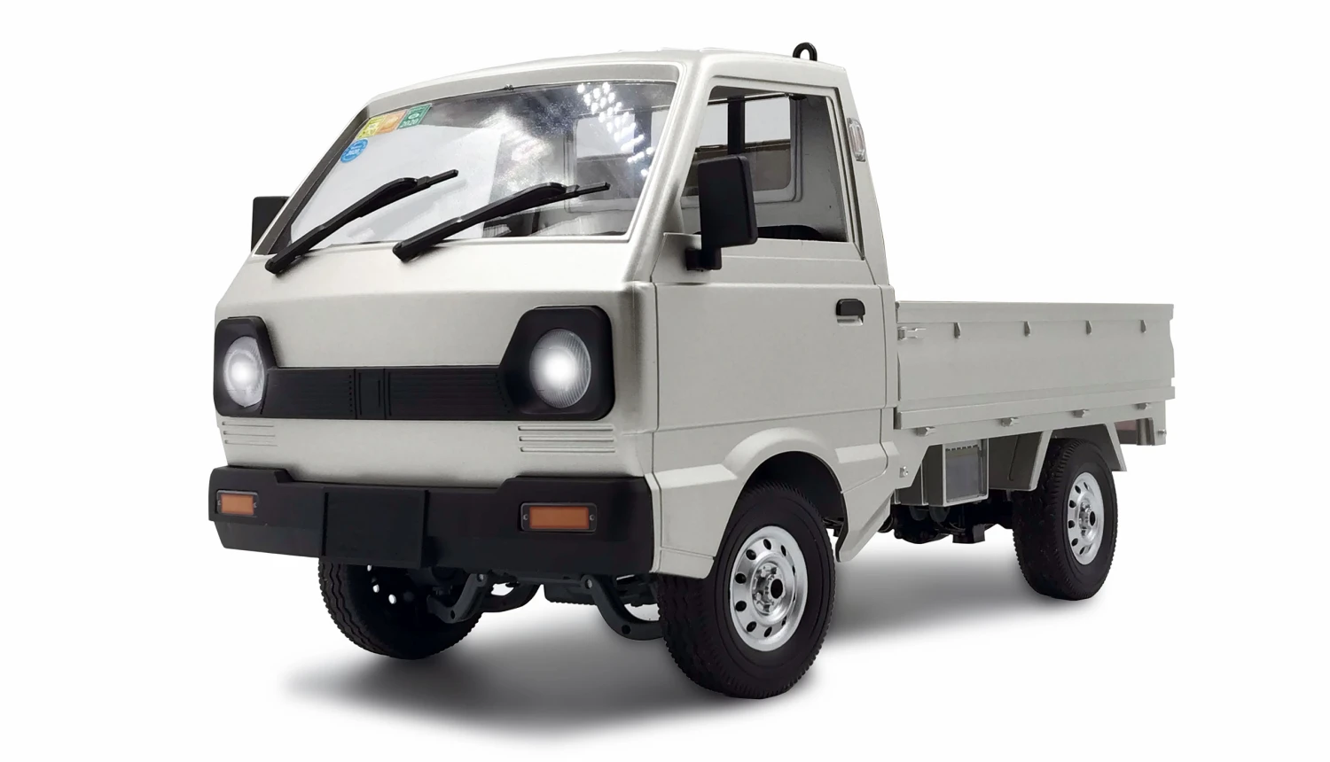 Scale Nachbau eines typisch asiatischen Mini Transporters (Kei Truck) in hochwertiger Lackierung (silber / grau metallic) und mit vollproportionalen Fahrfunktionen. Zudem verfügt das Modell über ein 2-Gang-Getriebe (über Sender schaltbar), eine LED-Beleuchtung, ein geschütztes Getriebe und Spritzwasserschutz. Somit ist das Modell voll outdoortauglich und bereitet sehr viel Fahrvergnügen auf jedem Untergrund. Durch die proportionale Lenkung mit variabelen Lenkausschlag (ebenfalls über Sender einstellbar) hat das Modell einen extrem kleinen Wendekreis und wird sehr wendig. Die max. Geschwindigkeit liegt im zweiten Gang bei ca. 20 – 25 km/h.