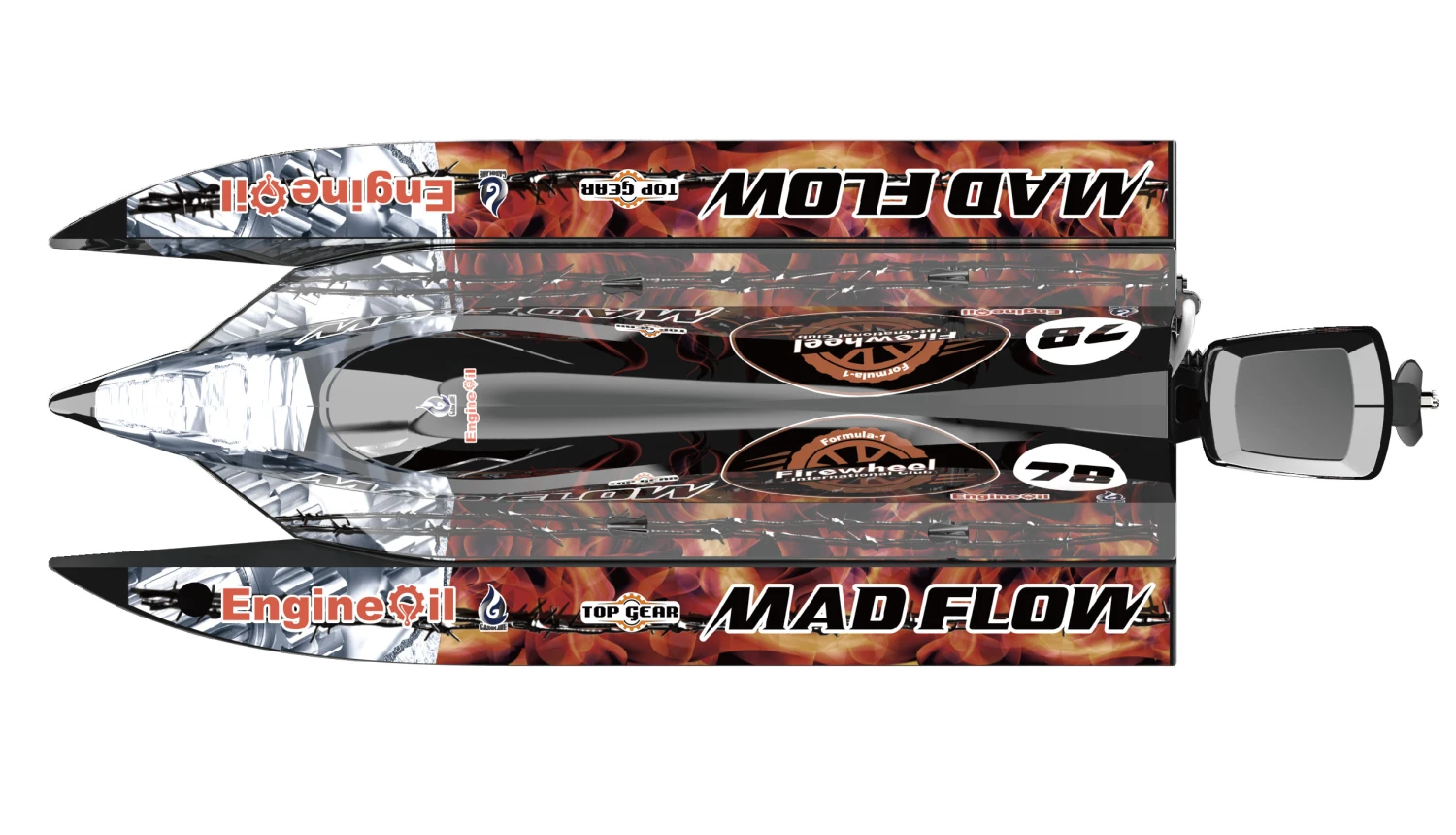 Ein schnelles und wendiges Formel-Boot mit kompakten und handlichen Außenmaßen. Ein kräftiger, wassergekühlter 3S 11,1V brushless Aussenläufer Motor beschleunigt das Boot auf über 55 km/h. Ein 30A ESC mit BEC Anschluß, ein 9g wasserfestes Metallgetriebe Lenkservo und eine feinfühlige 2,4 GHz digital proportionale Fernsteuerung sind weitere Highlights des Mad Flow Speed Bootes. Der robuste Rumpf ist dank eines Flutkanals selbstaufrichtend. Daher ist das Boot für Einsteiger wie auch für Fortgeschrittene geeignet.