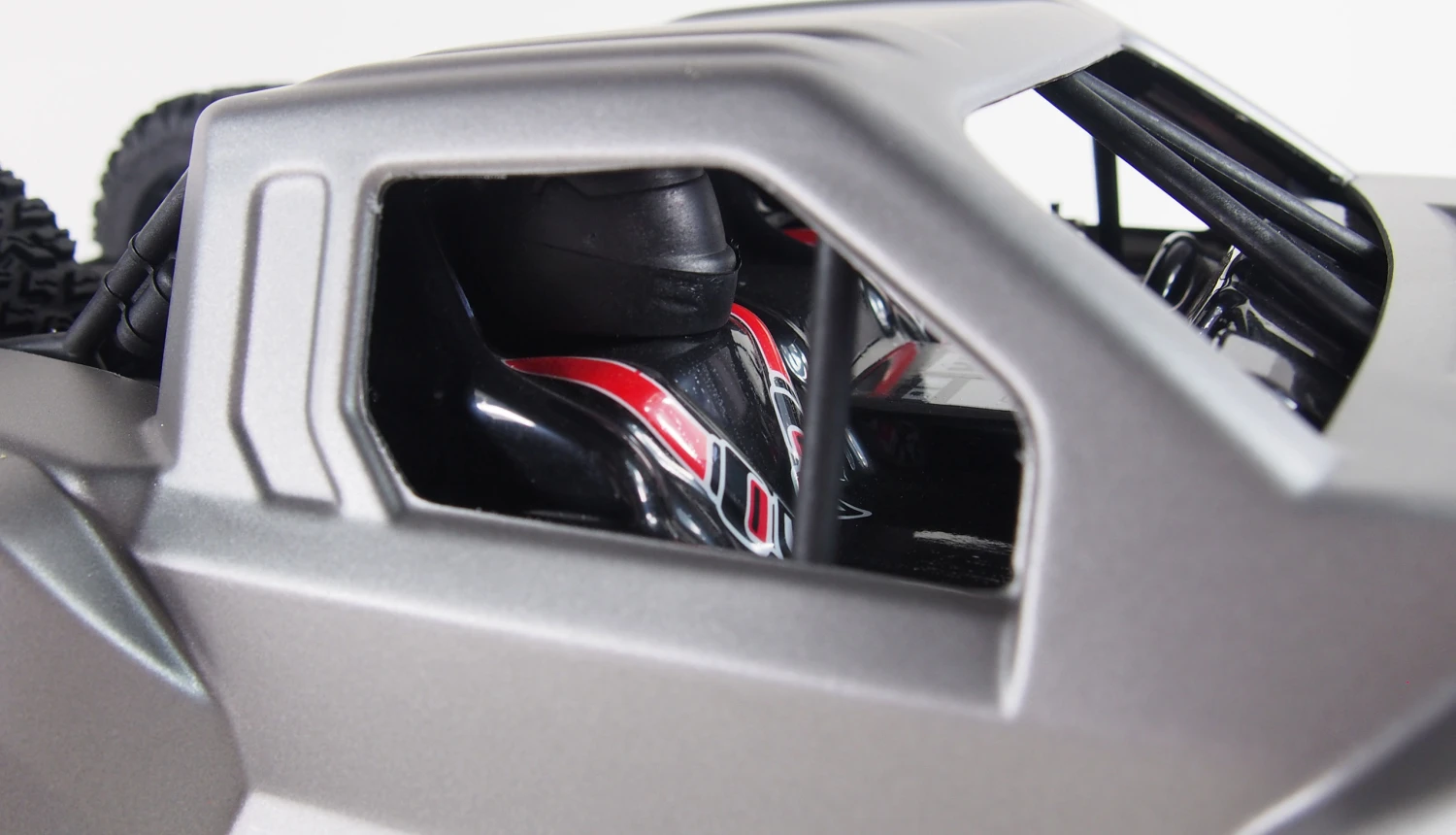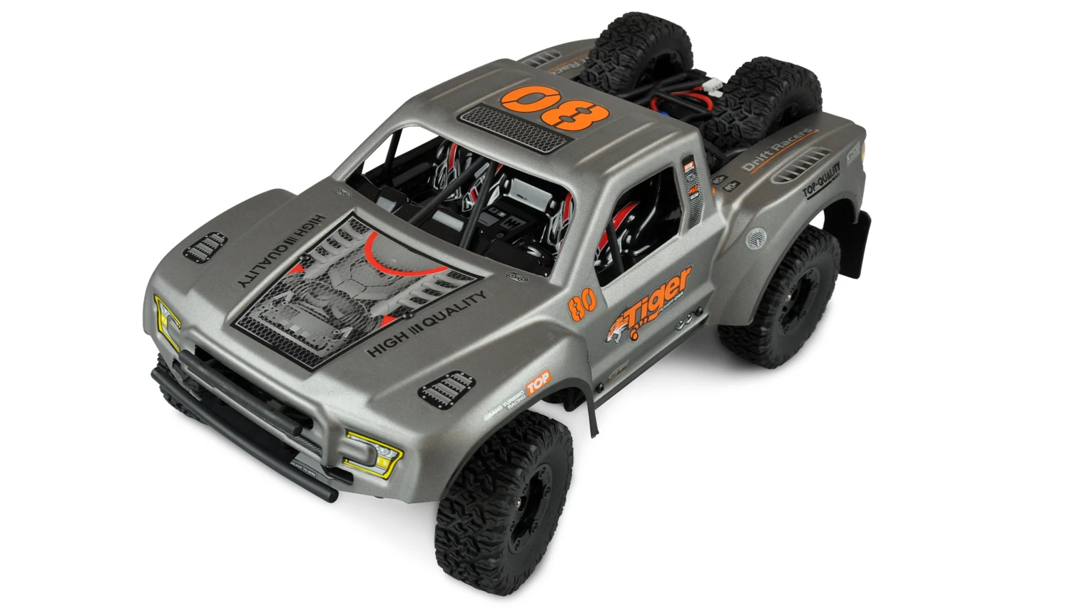 Dieser Short Course Truck im Maßstab 1:12 ist ein absolutes Sahnestück in seiner Klasse. Schnell, robust, RTR und top verarbeitet. Das sind nur einige Merkmale dieses super schönen Modells. Die ganze Verarbeitung ist sehr hochwertig und die Karosse ist aus schlagfestem ABS mit einer sehr guten Oberflächen Qualität. Der Hochleistungsmotor beschleunigt diesen Racer auf bis zu 40 km/h und die gut in der Hand liegende 2,4GHz Fernsteuerung mit proportionalem Gas- und Lenkkanal sowie Dualratenfunktion für Gas (Höchstgeschwindigkeit einstellbar) lässt sie nie die Kontrolle verlieren. Die High Grip Reifen bieten zu dem Traktion auf jedem Untergrund. Die Spritzwassergeschützte Elektronik tut ihr übriges um hohen Fahrspaß zu gewährleisten. Der Sender verfügt als weiteres Highlight über ein Lenkrad, welches sich durch den Sender drücken lässt. So wird aus einem rechts gelenkten Modell im Handumdrehen ein Linkslenker. Somit ist das Modell aus der Box ohne Umbau für Rechts und Linkshänder gleichermaßen geeignet.